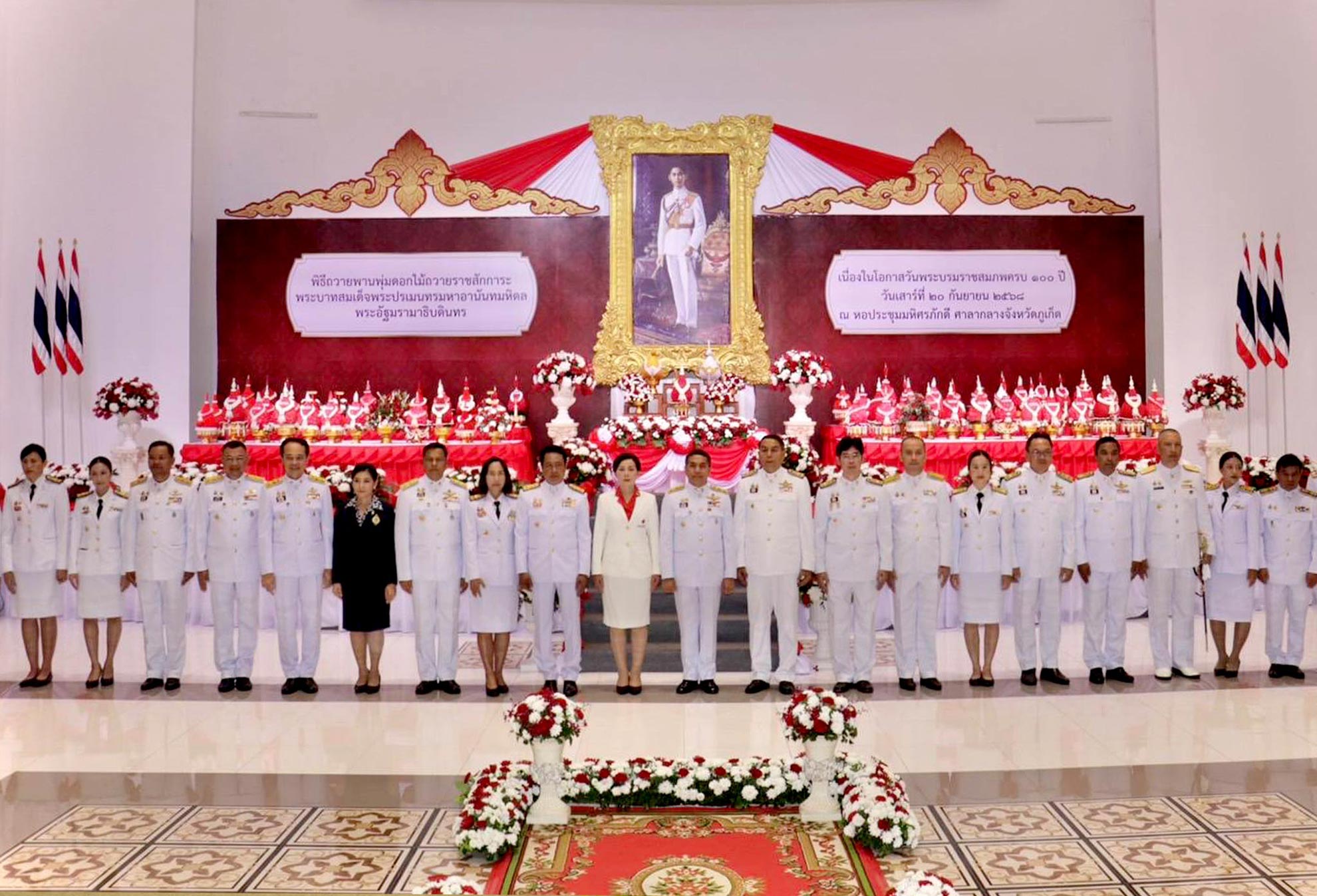 ➡️ ร่วม พิธีเจริญพระพุทธมนต์ พิธีทำบุญตักบาตรถวายพระราชกุศล, พิธีถวายเครื่องราชสักการะ และวางพานพุ่มดอกไม้สด เนื่องในโอกาส วันคล้ายวันพระบรมราชสมภพ พระบาทสมเด็จพระปรเมนทรมหาอานันทมหิดล พระอัฐมรามาธิบดินทร ครบ 100 ปี ณ หอประชุม ศูนย์ราชการ จว.ภูเก็ต